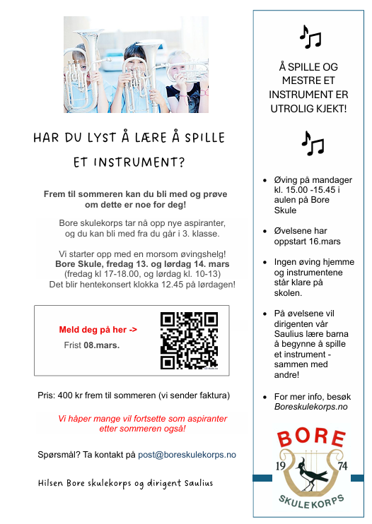 Helgen 13. og 14. mars er det seminar for korpset og vi tar inn nye aspirater! Har du lyst?? Trykk deg inn her og les mer!